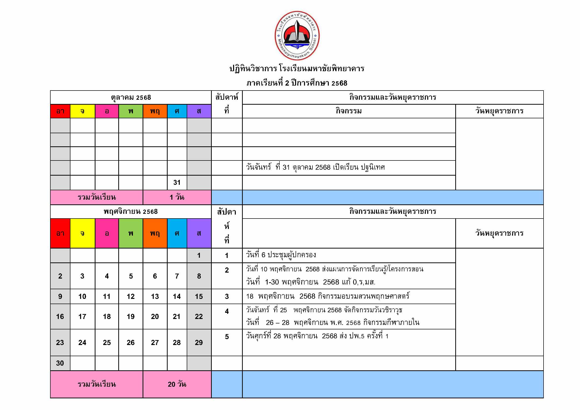 กิจวัตรประจำวัน โรงเรียนมหาชัยพิทยาคาร