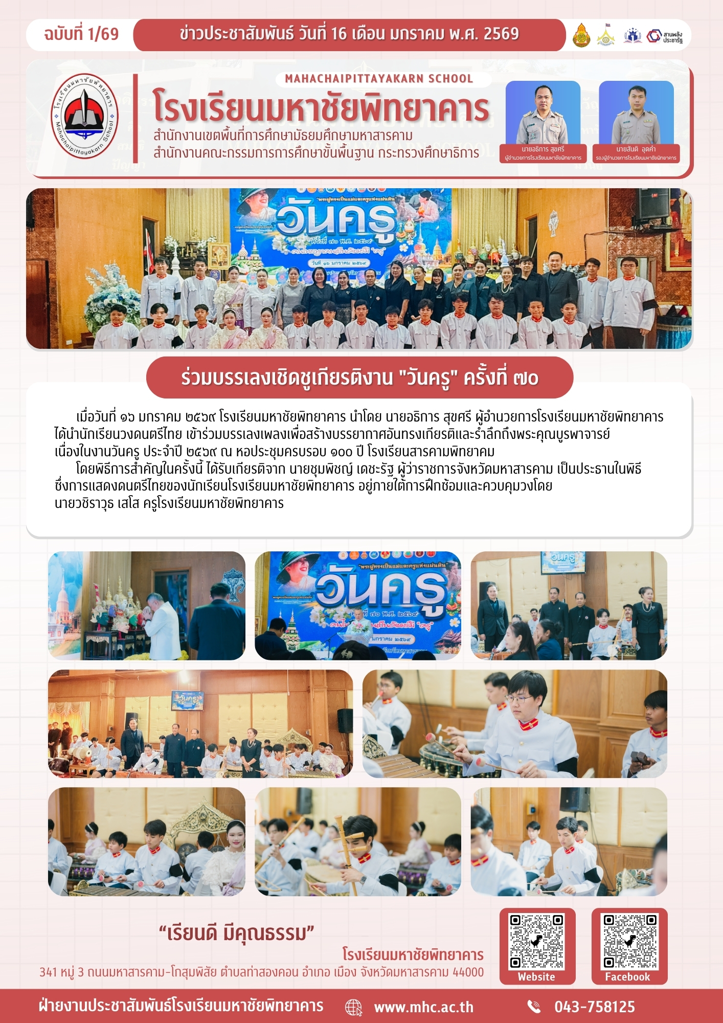วันพฤหัสบดี ที่ 13 มิถุนายน 2567 โรงเรียนมหาชัยพิทยาคาร ได้จัดกิจกรรมวันไหว้ครู ประจำปีการศึกษา 2567 ณ อาคารเอนกประส...
